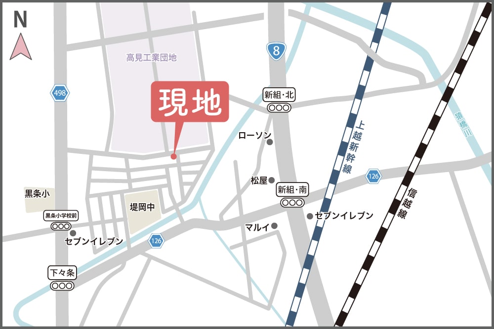 - 交通JR信越本線(直江津~新潟)「北長岡」駅より徒歩52分